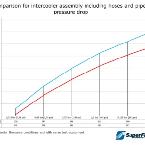 - El kit reemplaza todo lo que hay entre la salida del turbo y el cuerpo de aceleración, logrando una mejora drástica en el flujo de aire y el rendimiento de enfriamiento.